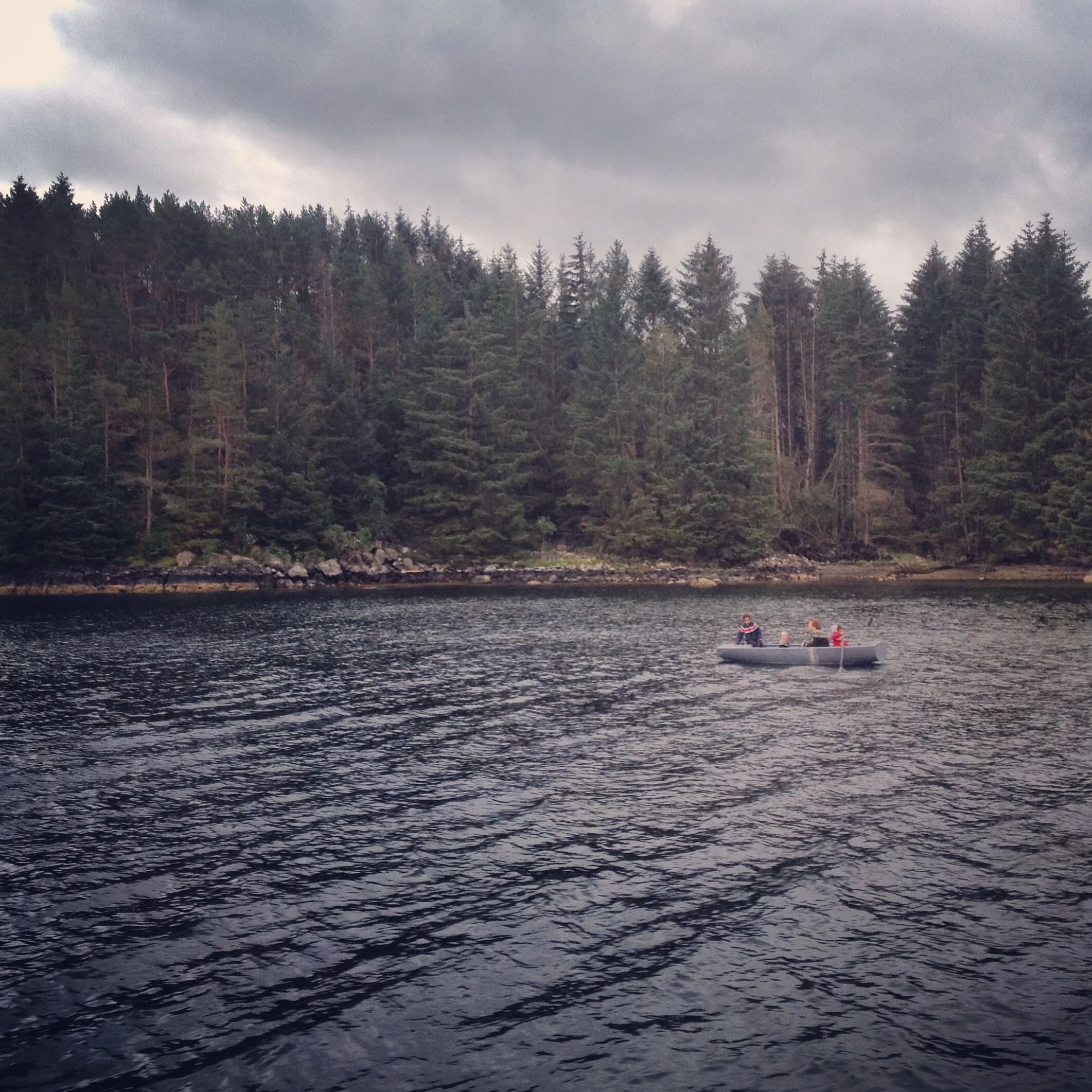 Around 5 o’clock on a Wednesday afternoon we left Bryggen wharf, there was going to be an event the next day for which we needed to vacate the pier. We sailed for a few hours and found an anchorage right before sundown. The next day Jay and the girls went to explore on land, I decided to stay onboard with Ártico which I am glad I did because as they reached shore it began to pour down rain, they returned soaked since they hadn’t worn their foul-weather gear. Jay made a lovely dinner with lamb he had bought in Bergen and we hunkered down to watch a movie, Jay even made caramel popcorn.