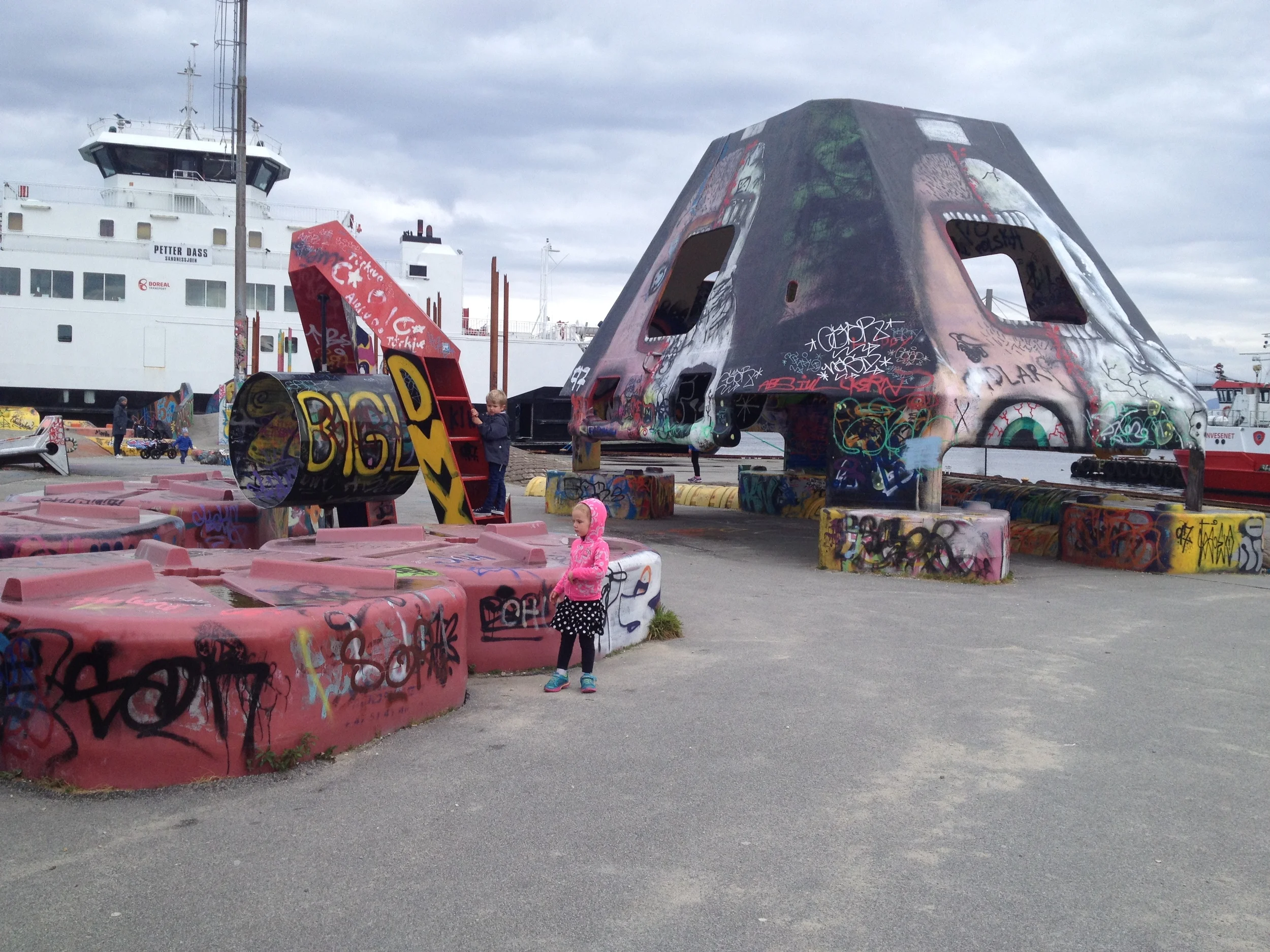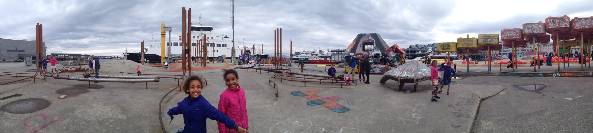 The girls also got to play in a very unique public city playground constructed with recycled equipment such as large fenders, fish containers, trawl doors, satellite dishes, all put together in a very functional and playful way.